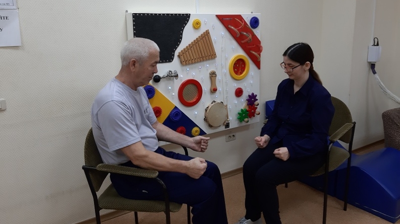 Чарада, тою хисләрен үстерү максаты белән, социаль хезмәт алучы Глүс Башаров психолог ярдәме белән төрле текстуралы тактил-усеш панель-такта кулланды. «Санны сизеп ал» күнегүендә Глүснең кулына карандашның кире ягы белән сан язылды, ул йомык күзләр белән язылган санны дөрес итеп әйтеп бирде. Соңыннан ул кулларына массаж, ә бармакларына гимнастика ясады.