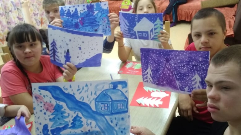 Балалар кышкы пейзажларны рәсем ясау процессыннан ләззәт алдылар һәм үз эшләренең нәтиҗәләреннән канәгать калдылар.