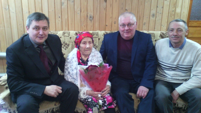 Юбилярга Россия Федерациясе Президенты Владимир Путинның котлау открыткасын, Балтач муниципаль район башлыгы исеменнән Рәхмәт хаты һәм кыйммәтле бүләк, соңгы эш урыны һәм авыл җирлеге исеменнән бүләкләр тапшырдылар.