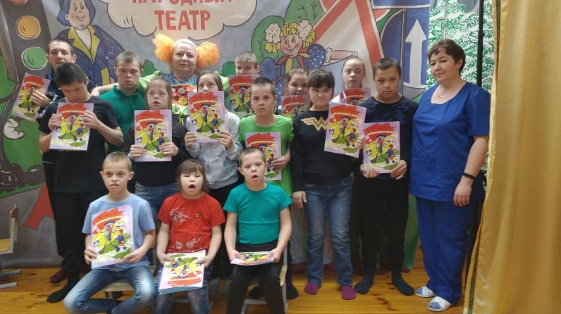 Казан шәһәреннән килгән кунаклар “Клаксон” исемле тамашаларын экстремаль жәяүле Веснушка һәм Ирисканың балалар белән танышуларыннан башлап җибәрделәр. Алар балаларга юл йөрү кагыйдәләре буенча төрледән-төрле сорулар бирделәр, җырны таны уенын уйнаттылар. Тамашага Светофорның килүе балаларда зур кызыксыну уятты. Краксон исемле клоун тәрбияләнучеләр белән “Кубик” уенын уйнатты. Бу уенда балалар рәсемнәргә карап, юл билгеләрен тануларын, белүләрен исбатладылар. Уенда катнашу балаларга аеруча ошады. Бәйрәбезне ямьләндереп, Татарстан Республикасы Саба районы ОГИБДД ОМВД булегеннән килгән Насибуллин Ильнур Дамир улы һәм Ягафарова Гүзәл Назиф кызы интернатта тәрбияләнүче һәрбер балага “Куркынычсыз юл” исемле китап бүләк иттеләр. Инвалидлар ункөнлеге уңаеннан уздырылган бу чара безнең балалар хәтерендә әле озак сакланыр. Безнең балалар йортында тәрбияләнүче һәр бала бу тамашадан бик кәнагать калдылар. Тамаша кунаклар белән бергә фотога төшү белән тәмамланды. Мондый чаралар бала тәрбияләудә иң яхшы алымнарның берсе булып тора.