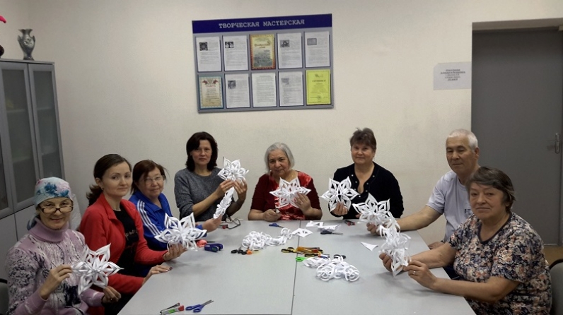 Социаль хезмәт алучылар Яңа елга әзерлек белән бәйле булган балачактагы бәйрәм мәшәкатьләрен искә төшерделәр һәм үзләрен әкият, тылсым дөньясында итеп хис иттеләр. Аларның һәркайсы үзләре ясаган чыршы бизәкләре турында яратып сөйләде. Хезмәт буенча инструктор кар бөртекләренең төрле заманча төрләрен күрсәтте һәм катнашучыларга үз куллары белән кәгазьдән күләмле кар бөртекләрен ясарга тәкъдим итте. Чарада катнашучылар, искиткеч иҗат дөньясына чумып, ак, матур кар бөртекләре ясадылар.