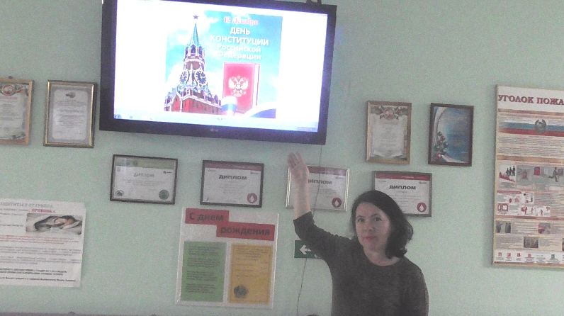Мамадыш картлар һәм инвалидлар интернат-йортында Конституция көненә багышланган «Конституция закон – без аның буенча яшибез» дигән хокукый сәгать үткәрелде. Яшәүчеләр һәр гражданинның хокукларыннан тыш, безнең илнең Төп Законын билгели торган бурычлары турында да сөйләштеләр. Кеше хокукларын яклауга аерым игътибар бирделәр. Дәүләтнең төп Законын белү һәм дөрес куллану-цивилизацияле тормыш нормасы, аның сыйфатын күтәрү өчен мөһим шарт икәнлеген белделәр. Чара мультимедиа презентациясе белән үрелеп барды.