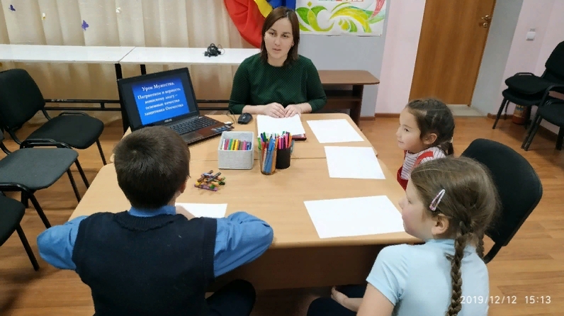 2019 елның 12 декабрендә «Милосердие» халыкка социаль хезмәт күрсәтү комплекслы үзәге социаль педагогы Газыйева Гүзәл Баулы муниципаль районында балигъ булмаган балалар белән «Патриотизм һәм хәрби бурычка тугрылык»дип исемләнгән төркемле дәрес үткәрде.