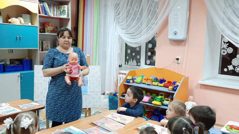 Сюрпризлы момент, дәрескә кунак килде, курчак Сорау Почемучкин. Балалар дәрес дәвамында кызыксынучанлыкларын күрсәттеләр, Сорау Почемучкин аларга сораулар бирде, хайваннар турында табышмаклар әйтте, рәсемнәр белән эшләде. "Кемдә?», “ Саннарны таратыгыз”,” Су өстендә”, “Кайда яши?» уеннарын уйнадылар.