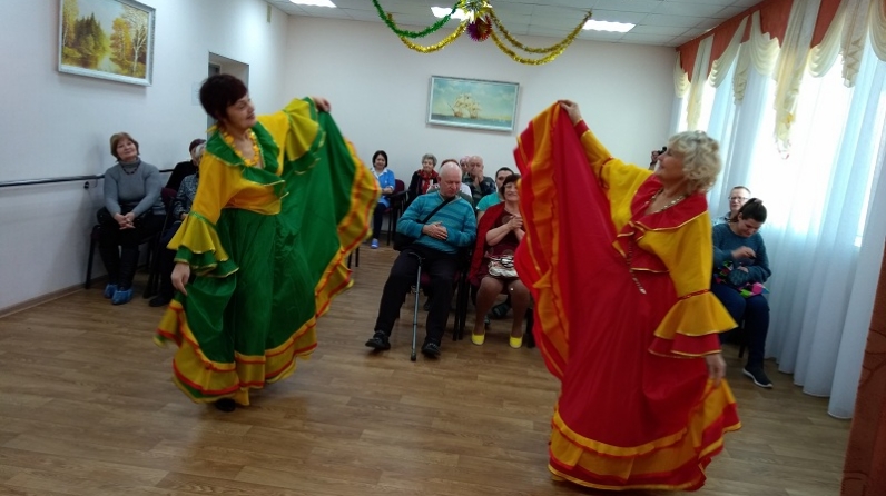 Иҗади коллектив үзенең яңа ел программасы белән социаль хезмәт алучыларны бию, музыка һәм халык аваз иҗаты дөньясына җиңел җәлеп итте. Тамашачылар биюләргә, вальсның нәфис хәрәкәтләренә һәм искиткеч матур сәхнә костюмнарына сокландылар. Сатирик мәсәлләр, кыш, яңа ел темасына багышланган дәртле җырлар тамашачыларга бәйрәм кәефе бүләк итте. Чара ахырында артистлар барлык социаль хезмәт алучыларны татар халык көенә “флешмоб” биюендә катнашырга чакырдылар һәм алар бик теләп уенга кушылдылар.