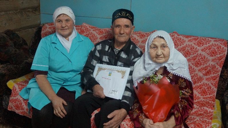 Юбилярга Россия Федерациясе Президенты Владимир Путинның котлау открыткасын, Балтач муниципаль район башлыгы исеменнән Рәхмәт хаты һәм кыйммәтле бүләк, соңгы эш урыны һәм авыл җирлеге исеменнән бүләкләр тапшырдылар.