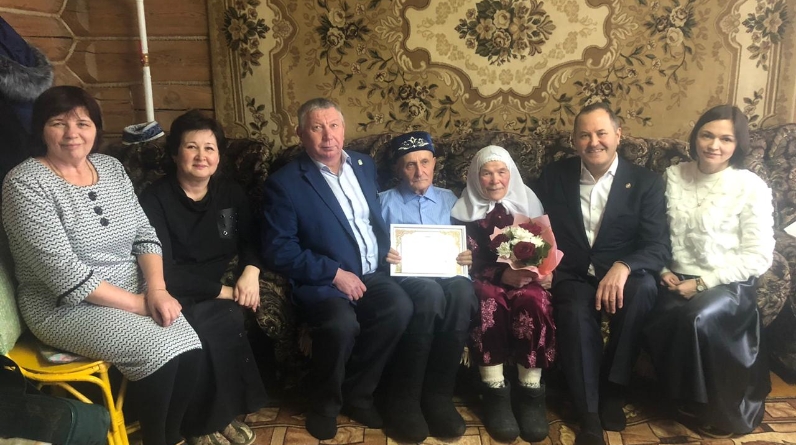 Юбилярга Россия Федерациясе Президенты Владимир Путинның котлау открыткасын, Балтач муниципаль район башлыгы исеменнән Рәхмәт хаты һәм кыйммәтле бүләк, соңгы эш урыны һәм авыл җирлеге исеменнән бүләкләр тапшырдылар.