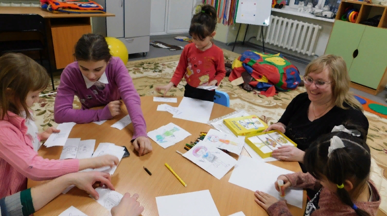 Бөгелмәнең «Радуга» халыкны социаль тәэмин итү комплекслы үзәге каршындагы гаиләгә һәм балаларга социаль ярдәм бүлекчәсе социаль педагогы Людмила Голубева балигъ булмаганнар, социаль хезмәт алучылар белән «Мир вруг» дигән төркемле дәрес үткәрде. Очрашуның максаты балаларның эмоциональ торышын өйрәнү, шулай ук аларның иҗади потенциалын һәм коммуникацияләрен стимуллаштыру иде. Дәрестә балалар «минем тормышымда гаилә " анкетасының сорауларына җавап бирделәр. Аннан соң, метафорик карталар ярдәмендә малайлар һәм кызлар сайлап алынган детальләрне кәгазьгә ябыштырып, аларны буяп куйганнар. Дәреснең һәр катнашучысы үз роботына исем бирде, аның ни өчен нәкъ менә шулай килеп чыгуы һәм аның кәефе белән бәйле булуы турында сөйләде. Эш барышында кайбер балалар үз картиналарына яхшы кәеф, бәйрәм, шатлык, куаныч, шатлык, бәхет, шулай ук башка эчке киеренкелек һәм кичерешләр күчерделәр.