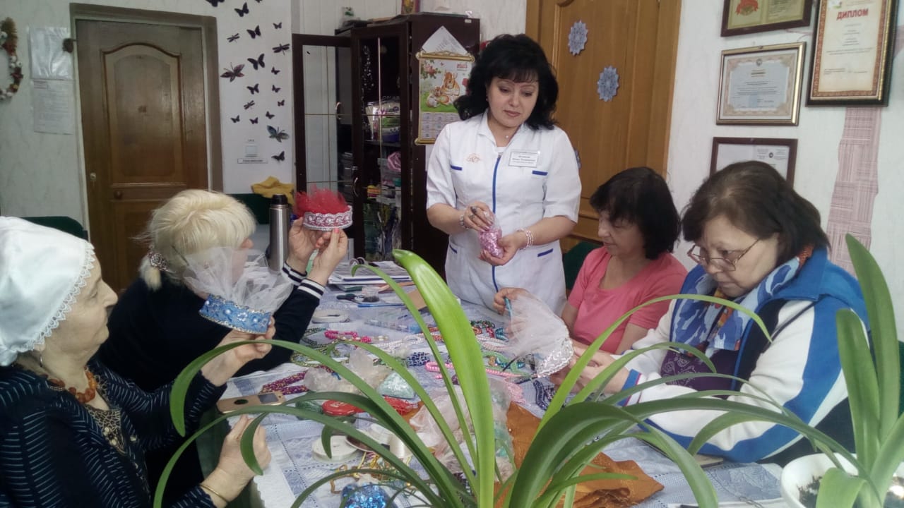Баулы шәһәренең «Березка» инвалидларны тернәкләндерү үзәгенең хезмәт буенча инструкторы Юлия Исхакова Бөтендөнья кул эшләре көненә багышланган мастер - класс үткәрде. Чараның максаты: социаль хезмәт алучыларны төрле кул эшләре белән таныштыру, иҗади шөгыльләргә кызыксыну уяту, декоратив - гамәли сәнгатьнең төрле төрләре турында белемнәрне киңәйтү. Мастер-класс: ободокны үз кулларың белән ничек ясарга. Чәч өчен ободокларны төрле материаллардан ясарга була: фоамиран, челтәр, лента, тире, фетр һәм декорлы бусинкалар, стразалар һәм бисер белән. Нәтиҗәдә, һәрвакыт үзенчәлекле аксессуар килеп чыга. Ободокны эшләү өчен әзер тимер нигез кирәк. Социаль хезмәт алучылар аны матур һәм үзенчәлекле итеп бизәргә тиеш. Чөнки һәр социаль хезмәт алучы аңа үзенчәлекле бизәк һәм декор өстәргә мөмкин. Техника һәм материаллар: пистолет-клей, челтәр, бусинкалар һәм стразалар. Барлык материалларны да тимер нигезгә ябыштырабыз һәм бизибез, шедеврлар ясап, оста эшлибез. Мондый ободоклар кызлар һәм оныклар өчен туры килә. Юлия Исхакова төрле ободоклар күрсәтте һәм челтәр һәм стразадан креатив ободок ясарга тәкъдим итте. Социаль хезмәт алучылар барысы да үз эшләренең нәтиҗәсеннән канәгать калды.Начало формы