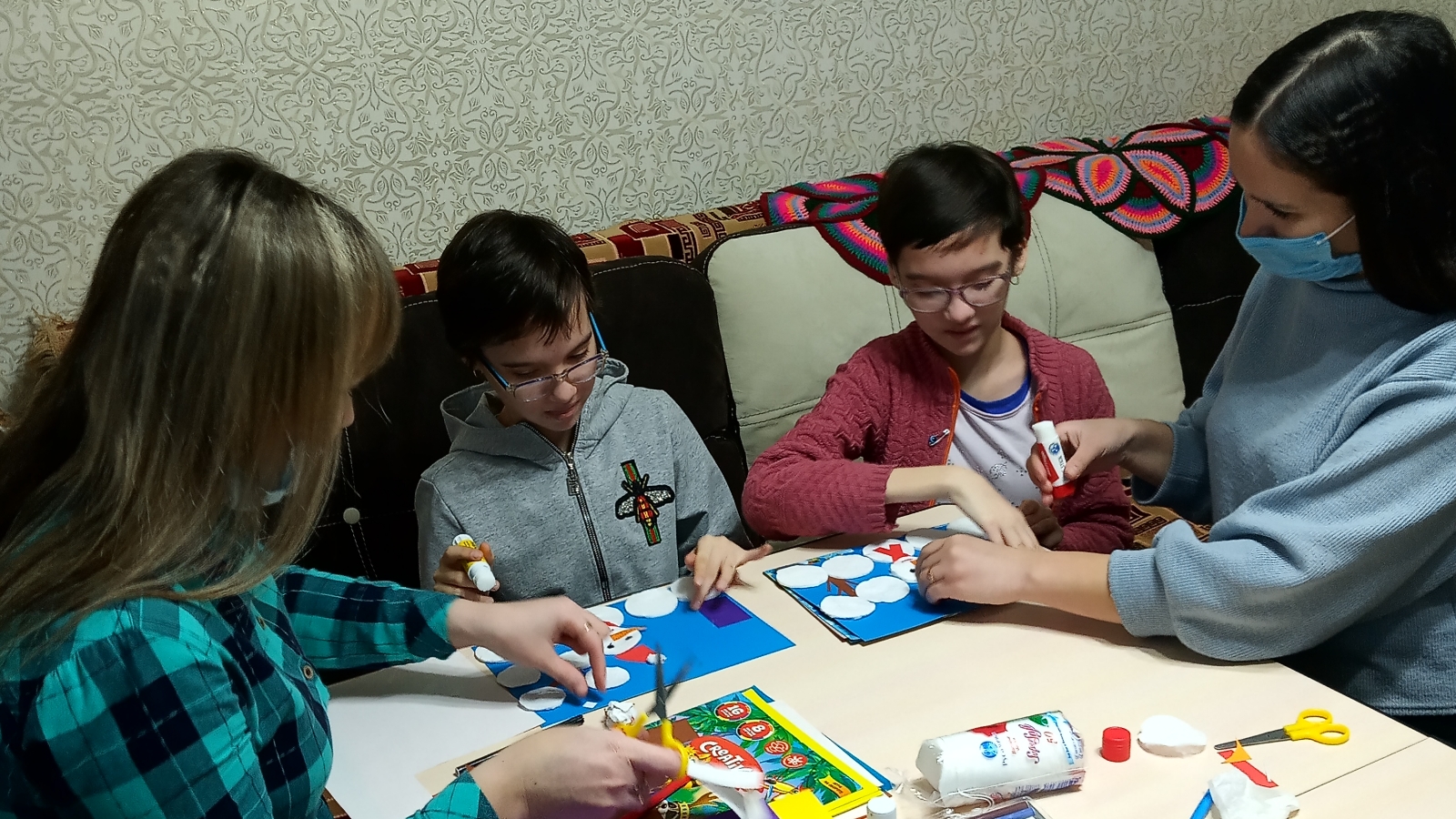 «Күңелле бармаклар» программасы кысаларында «Тылсым» халыкка социаль хезмәт күрсәтү комплекслы үзәгенең гаиләгә һәм балаларга социаль ярдәм бүлекчәсе социаль педагоглары «Кар бабай» дигән мамы кдискларыннан аппликация буенча дәресләр үткәрделәр.