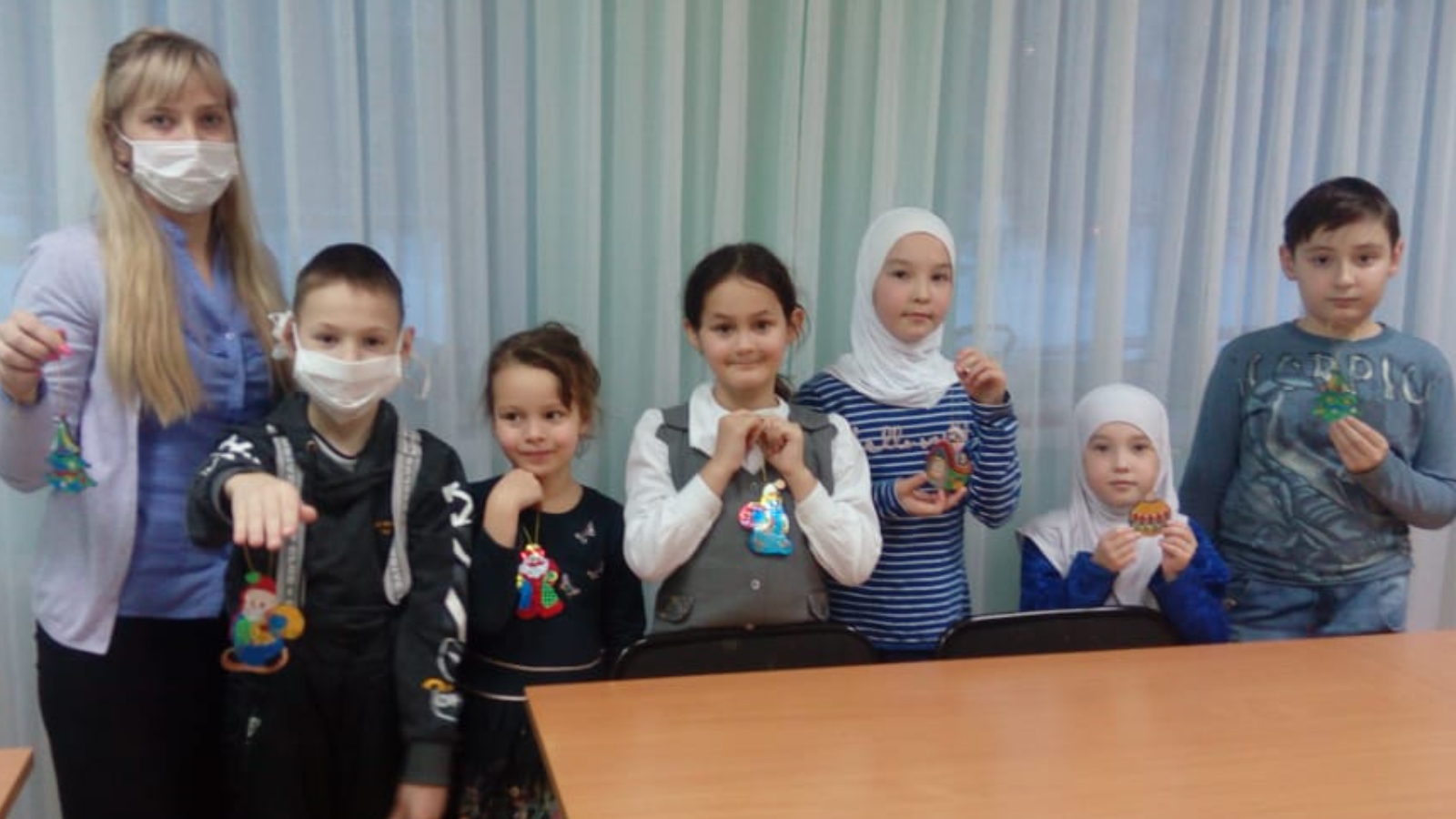 Төркем дәресендә балаларга бәйрәм кәефен Яңа ел бизәкләре ясау белән дәвам итәргә тәкъдим ителде. Катнашучылар дәреснең идеясен шатланып хупладылар һәм эшкә тотындылар. Хезмәт буенча инструктор тарафыннан эшләнмә ясау техникасы аңлатылды, һәрберсе үзенә ошаган нигезне сайлый һәм кирәкле эшләрне этаплап башкара алды. Төсле металлаштырылган элпә белән эшләү процессы балалар өчен чын тылсым булды: элпәне җилфердәп торган нигездән төшергәч, эшләнмә ялтыравыклы төсләргә буялды. Һәр катнашучының үзенчәлекле яңа ел бизәге килеп чыкты. Дәрестә һәркем үзенең фантазиясен, уйлап табучанлыгын һәм иҗади сәләтен күрсәтте.