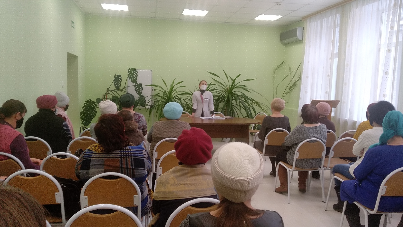 Яшел Үзән үзәк хастаханәсенең табиб-эпидемиологы Хухрина Анна Александровна социаль хезмәткәрләргә прививканы үткәрү кирәклеге, аңа каршы күрсәткечләр булу турында мәгълүмат бирде, шулай ук аудиториянең сорауларына җавап бирде.