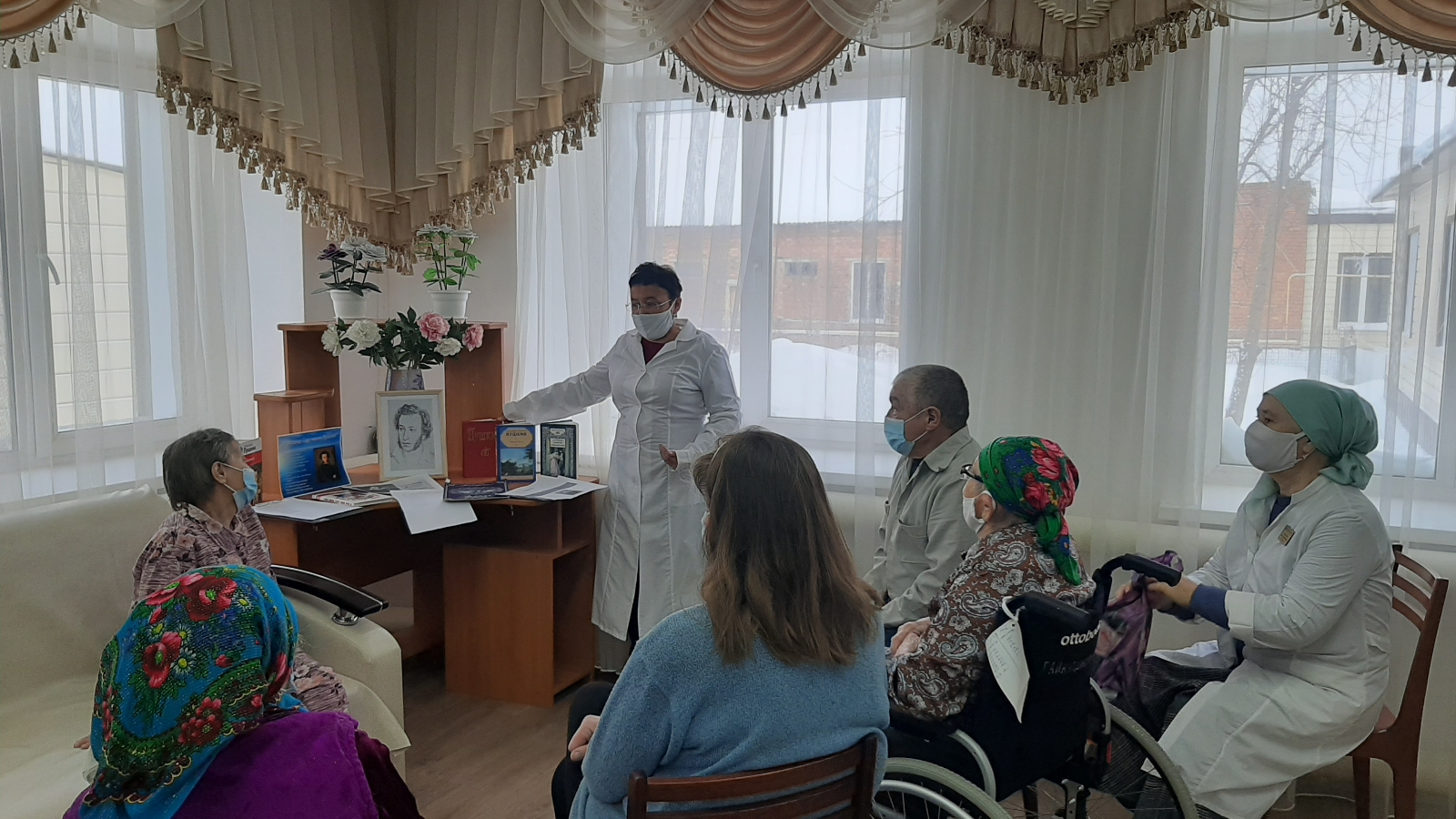 Бүген, 10 февраль көнне Мөслим муниципаль районының “Мөслим картлар һәм инвалидлар интернат-йортында “Район үзәкләштерелгән китапханәсе” волонтеры Вафина Г.З. шагыйрь А. С. Пушкинны искә алу көненә багышланган кызыклы чара үткәрде. Гөлсирә Зәкәрия кызы шагыйрьнең биографиясе, иҗаты турында бик аңлаешлы итеп сөйләде, аның китапларыннан күргәзмә оештырды. Тыңлаучылар А.С.Пушкинның әсәрләрен бик кызыксынып, бирелеп тыңладылар , бала чакларында укылган шигырьләрен искә төшерделәр, шагыйрьнең китапларын карадылар, тәэсирләре белән уртаклаштылар.Чара Туган телләр елы символы астында узды.