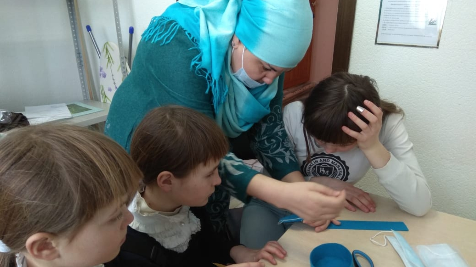 "Тегү эше" кабинетындагы чираттагы шөгыль практик эш форматында узды. Шөгыль башында социаль хезмәтләр алучылар тегү машиналары турында, аларны сатып алганда ничек дөрес сайларга кирәклеге турында сөйләштеләр. Чакырылган тегү остасы Әлфия Шәфигуллина тегү серләре белән уртаклашты. Тегүче остазлары астында күп балалы гаилә кызлары "Түбәтәй" татар милли баш киемен ясау эшен башлап җибәрделәр. Башта нигезен, аннары өске катламын да ясарга өйрәндек. Түбәтәйләрне бизәүне катнашучылар киләсе очрашу вакытында дәвам итәчәкләр.