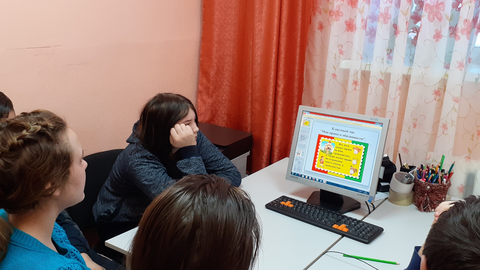 24.02.2021 ел. cоциаль педагог Смелова Н. А.өлкән мәктәп яшендәге балалар белән «Минем хокукларым һәм бурычларым»дигән презентация күрсәтү белән әңгәмә – уйланулар үткәрде. Максат: балаларның хокукларын һәм бурычларын карау, үз-үзеңә ышанычны ныгыту. Дәрестә 5 бала катнашты.