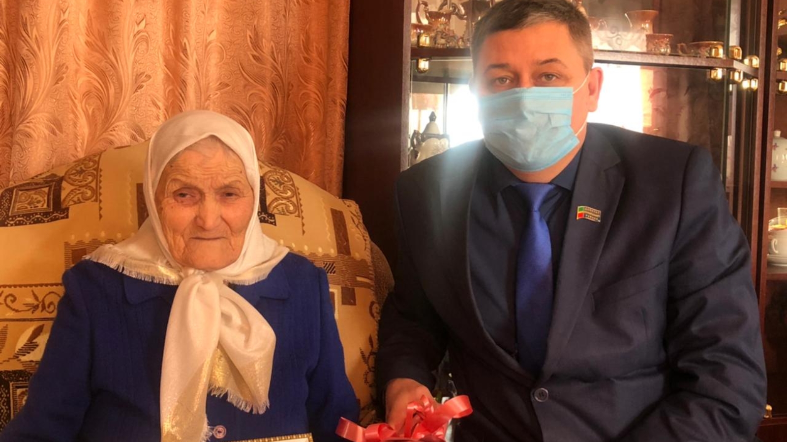 Юбилярга Россия Федерациясе Президенты Владимир Путинның котлау открыткасын, Балтач муниципаль район башлыгы исеменнән Рәхмәт хаты һәм кыйммәтле бүләк, сонгы эш урыны, авыл җирлеге исеменнәндә бүләк - күчтәнәчләр тапшырдылар.