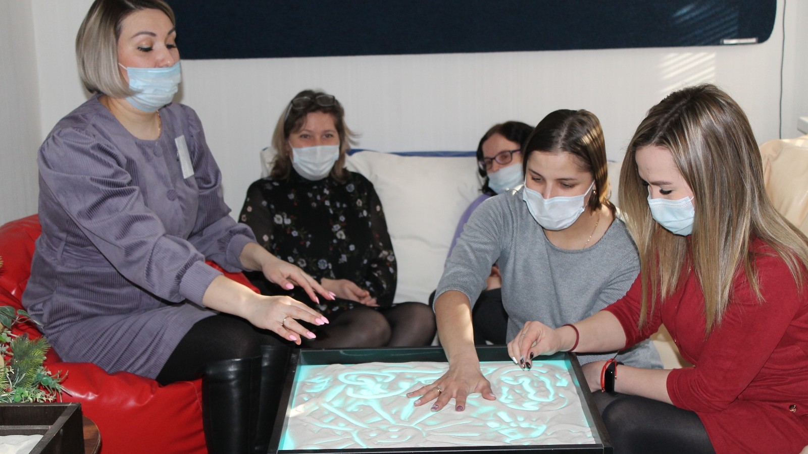 Кичә, әйтик, учреждение психологы Гүзәл Җамалиева гаиләгә һәм балаларга социаль ярдәм бүлекчәсе хезмәткәрләре белән сенсор бүлмәсендә дәрес үткәрде. Комплекслы үзәк белгечләренә сенсор җиһазларын кулланып мускул-сулыш релаксациясе техникасы, үз-үзеңне бәяләү күнегүләре, шулай ук ком терапиясе элементлары тәкъдим ителде.