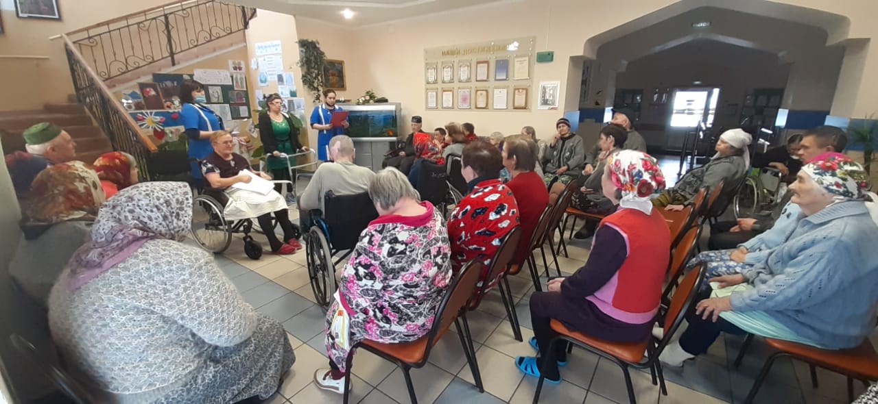 2021 нче елның 8 нче мартында өлкәннәр һәм инвалидлар өчен интернат – йортта Халыкара хатын-кызлар көненә багышланган бәйрәм чарасы узды. Иң яхшы һәм иң көтелгән хатын-кызлар бәйрәме-8 Март. 8 Мартта чәчәк атучы беренче чәчәкләр: лалә, мимозлар бәйрәм рухы өстиләр. Гадәттәгечә бу көнне интернат-йортта бәйрәм! Бәйрәмгә алдан әзерләнгәннәр: сценарий төзелә, конкурслар уйлана, номерлар репетицияләнә, бүләкләр әзерләүгә иҗади якын киләләр. Һәм менә бу күптән көтелгән һәм шатлыклы көн җитте! Беркем дә игътибарсыз калмады! Катнашучыларның һәркайсына аерым роль бирелде. Барысы бергә җырлар җырладылар, шигырьләр сөйләделәр, төрле күңелле конкурсларда катнаштылар. Бик күңелле һәм җылы бәйрәм барып чыкты. Бәйрәм ахырында хатын-кызларга тантаналы рәвештә безнең бабайлар үзләре ясаган открыткаларын тапшырдылар.