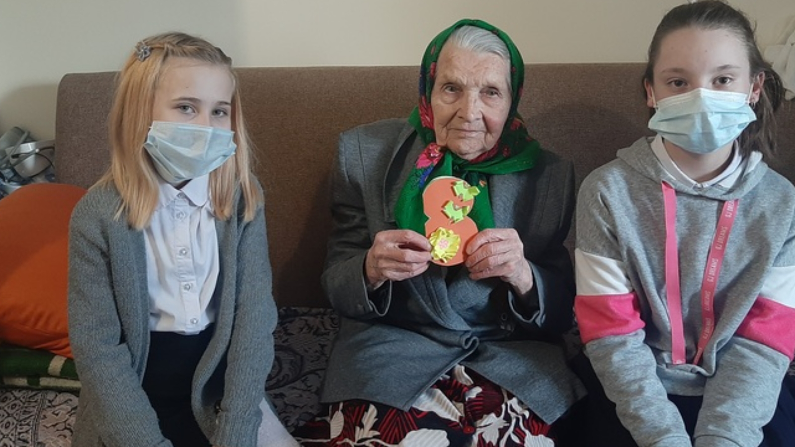 «Сугышның йөзе хатын-кызныкы түгел...» проектын тормышка ашыру кысаларында, Баулы муниципаль районы «Милосердие» халыкка социаль хезмәт күрсәтү комплекслы үзәгенең гаиләгә һәм балаларга социаль ярдәм бүлекчәсе белгечләре «Яшь патриотлар» отряды волонтерлары белән берлектә, өйдә социаль хезмәт күрсәтү бүлегендә хезмәт күрсәтүче тыл хезмәтчәннәрен 8 Март-Халыкара хатын-кызлар көне белән котладылар. Балалар аларга үз куллары белән ясалган бәйрәм открыткалары тапшырдылар.