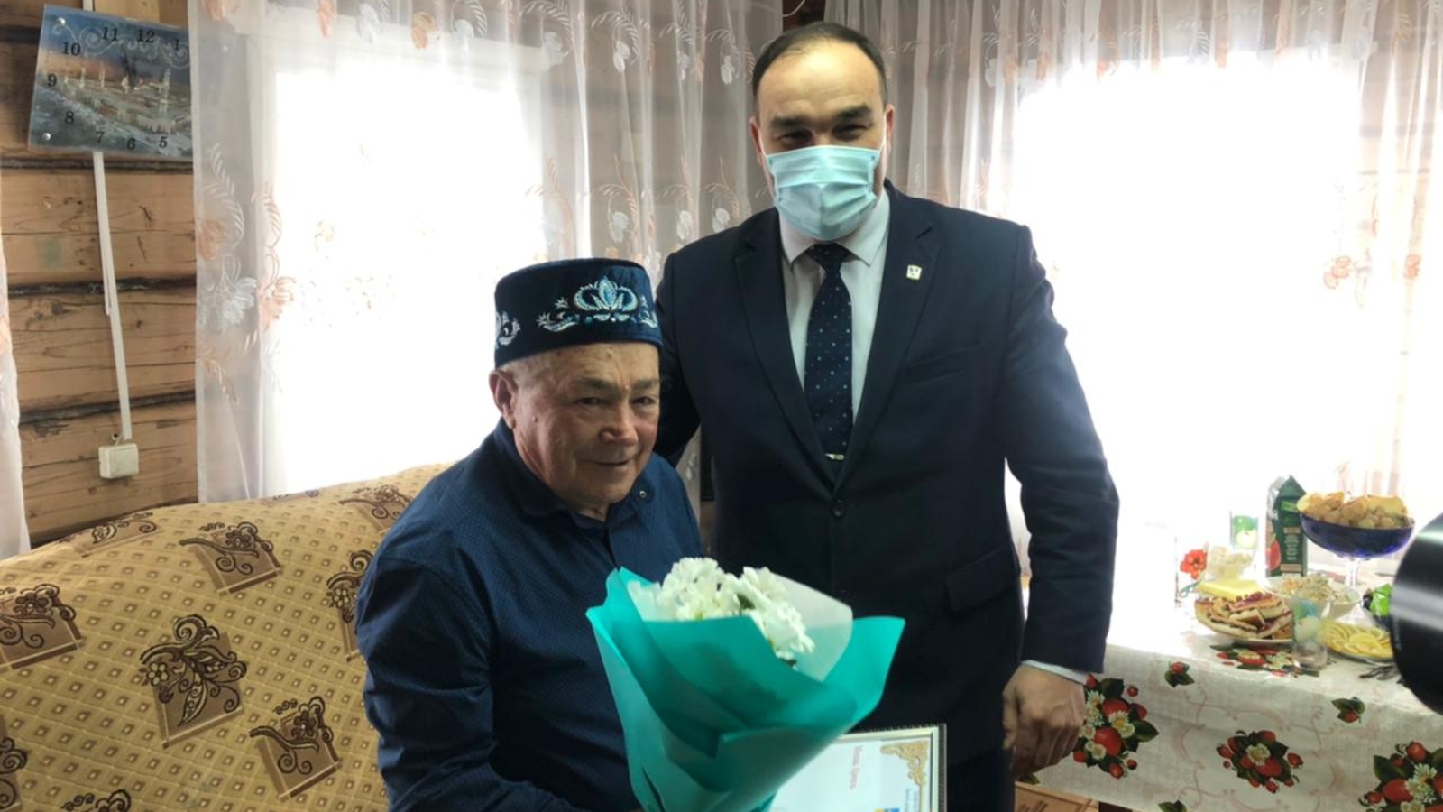 Юбилярга Россия Федерациясе Президенты Владимир Путинның котлау открыткасын, Балтач муниципаль район башлыгы исеменнән Рәхмәт хаты һәм кыйммәтле бүләк, соңгы эш урыны һәм авыл җирлеге исеменнән бүләкләр тапшырдылар.