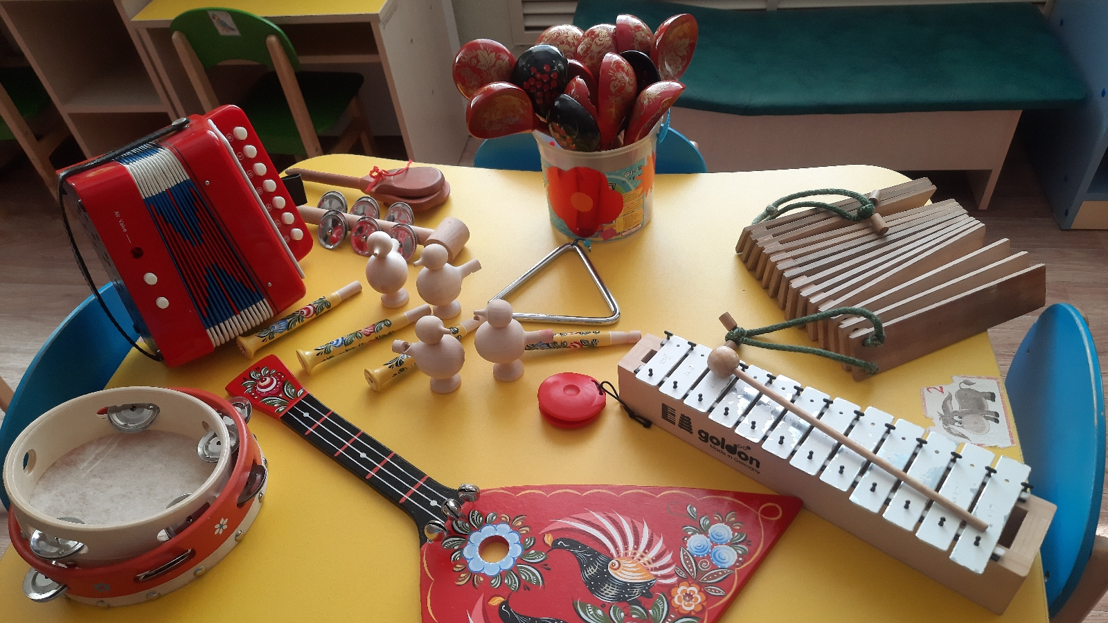 Yзәктә тәрбияләнүчеләргә туган телдә җырлардан өзекләр белән аудиоязмалар тәкъдим ителде, шулай ук балалар бу әсәрләрдә нинди музыка кораллары яңгыравын һәм аларның исемнәрен атадылар. Балалар халык көйләрен кашыкларда уйнап карадылар. Аннары балалар үз куллары белән “Гармун” - халык музыка уен коралына аппликация ясадылар.