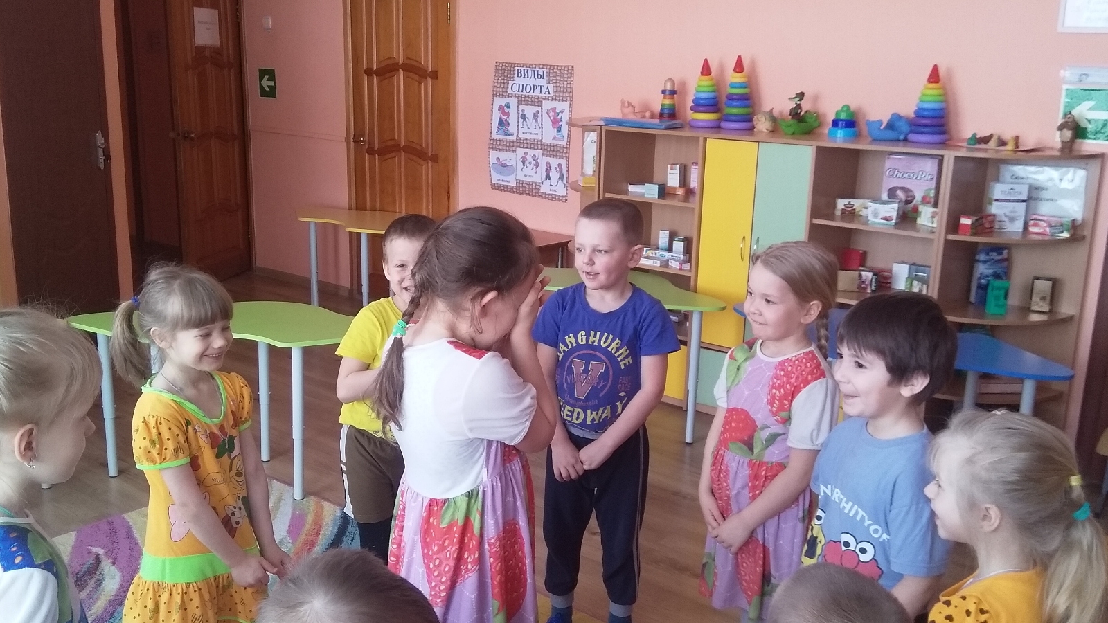 Әңгәмә барышында балалар «Әдәплелек нәрсә ул? », үзләрен җәмгыятьтә, приютта, китапханәдә, кибеттә һәм башка урыннарда ничек тотарга кирәклеген белделәр. Кемне әдәпле дип атарга мөмкин? Нинди әдәпле сүзләр була? Ә әдәпле кеше ул үзен яхшы тотучы, шаярмаучы, шауламаган, ягымлы сүзләр сөйләүче, тупас сүз әйтмәүче, башкаларга ярдәм итүче. Әдәплелек - яхшы тәртип, әдәп кагыйдәләрен үтәү ул. Ишетелгән материалны ныгыту өчен, тәрбияче тарафыннан әдәпле сүзләр турында уен үткәрелде -«Доскажи словечко», «Вежливые прятки», балалар рәхәтләнеп «әдәпле» табышмакларны чиштеләр. Балалар үзләрен җәмәгать урыннарында ничек тотарга кирәклеген, бер-берсе белән аралашуда нинди әдәпле сүзләр ярдәм итүен искә төшерделәр.