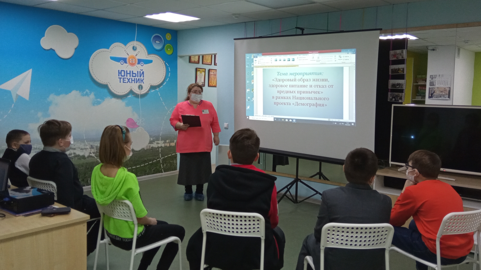 Чара «Сәламәт яшәү рәвеше», «Дөрес туклану», «Халык сәламәтлеге», «Зарарлы гадәтләр» төшенчәләре турында әңгәмә белән башланып китте. Балалар бу терминнарны ничек аңлаулары белән уртаклаштылар, кешенең сәламәтлеге, тормышның иң мөһим кыйммәтләре, аны саклау һәм ныгыту мөһимлеге, сәламәт халык, илнең киләчәге турында фикер алыштылар. Соңыннан белгеч “Сәламәт булырга” дип исемләнгән видеоролик карарга тәкъдим итте, анда сәламәт туклану, зарарлы гадәтләрдән баш тарту, көн һәм йокы режимы, спорт белән шөгыльләнү турында әйтелгән иде. Балалар зур кызыксыну белән фильм карадылар, аның эчтәлеге буенча әңгәмәдә актив катнаштылар.