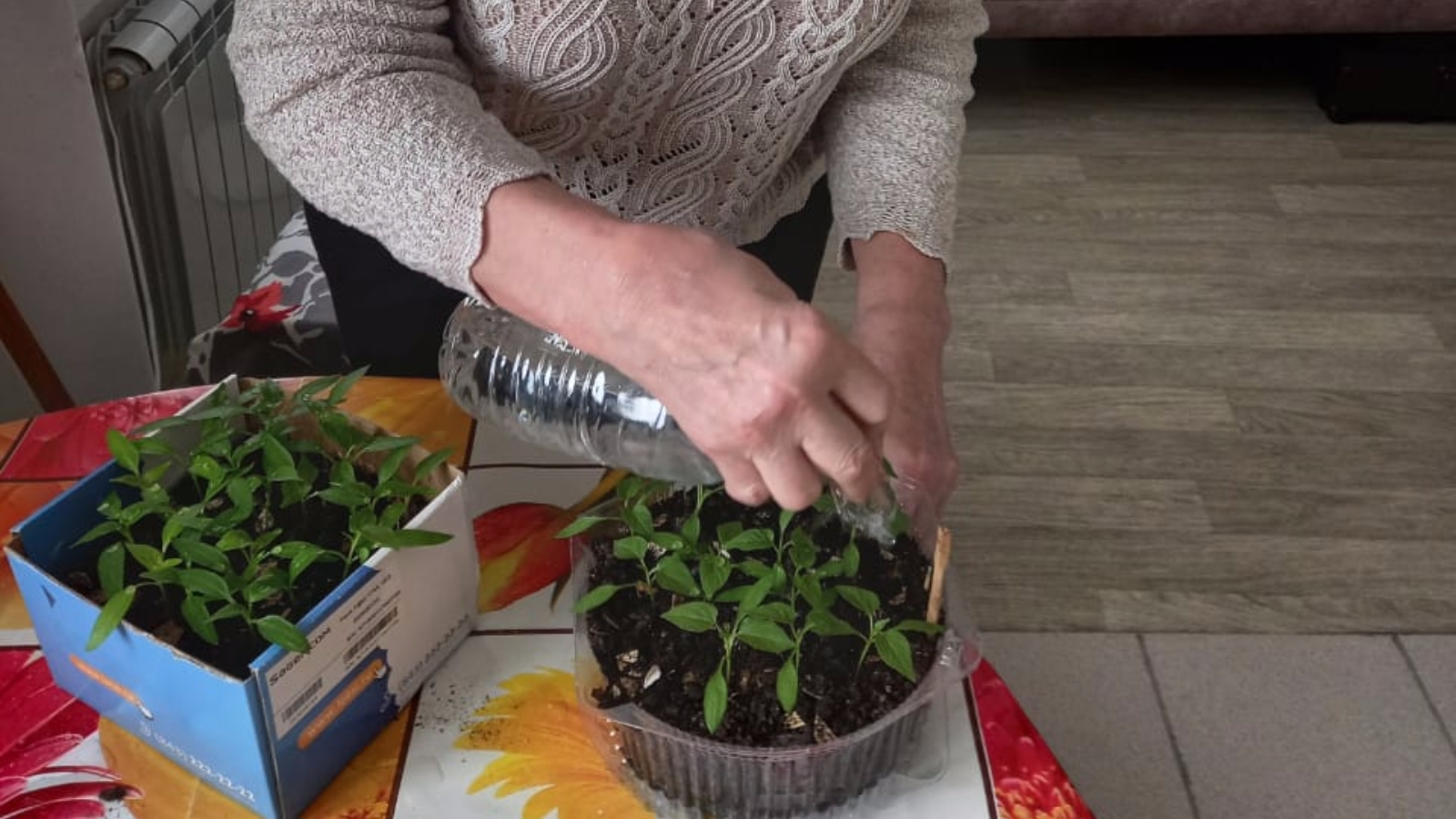 Социаль хезмәт алучылар өйдә социаль хезмәткәрләр белән берлектә технология кысаларында чәчү материалын утырту белән шөгыльләнәләр.