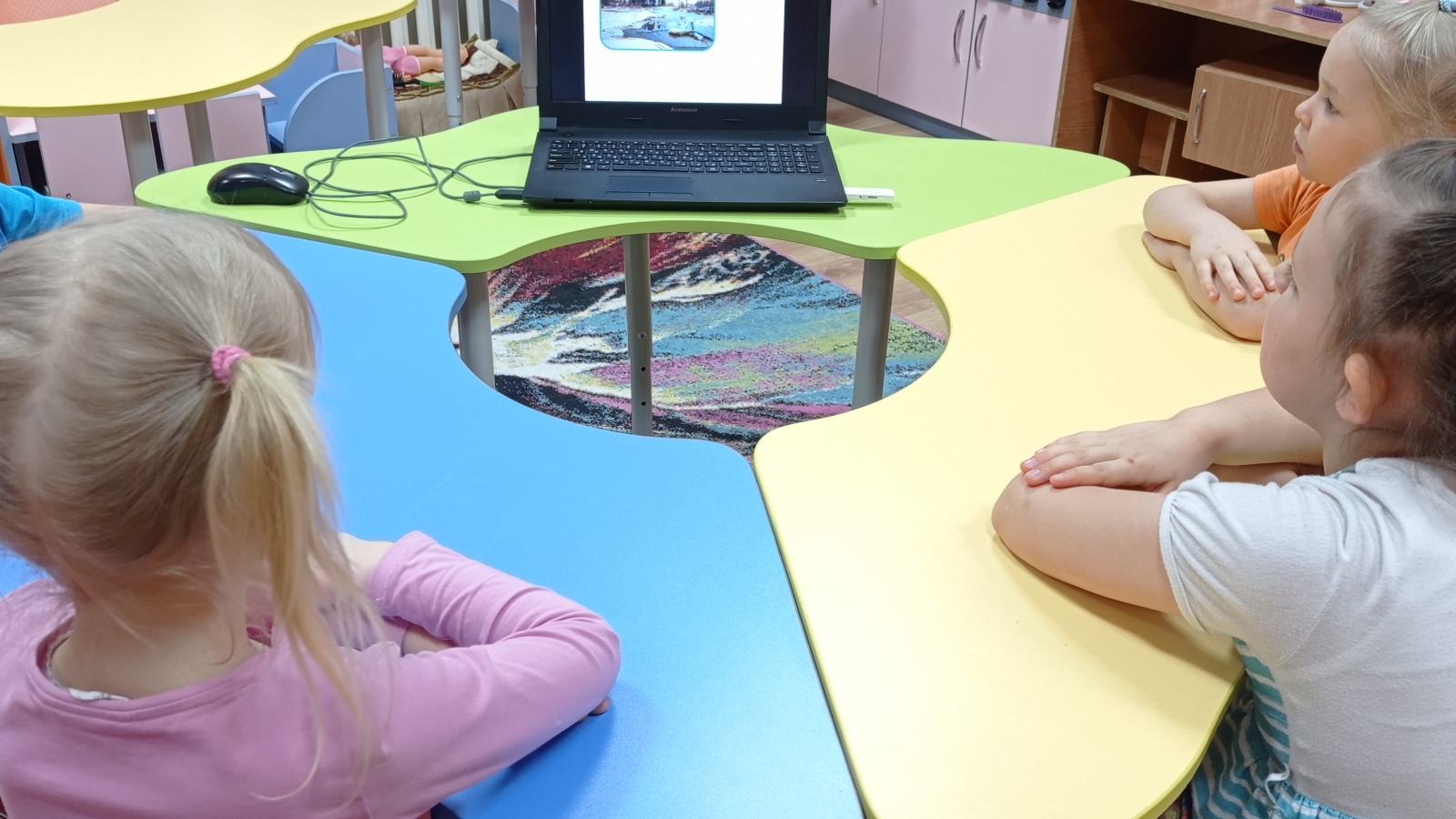 Викторина вакытында балалар ноутбук белән эшләделәр. Балалар викториналарны бик яраталар: бик теләп табышмаклар чиштеләр, сорауларга җавап бирделәр.