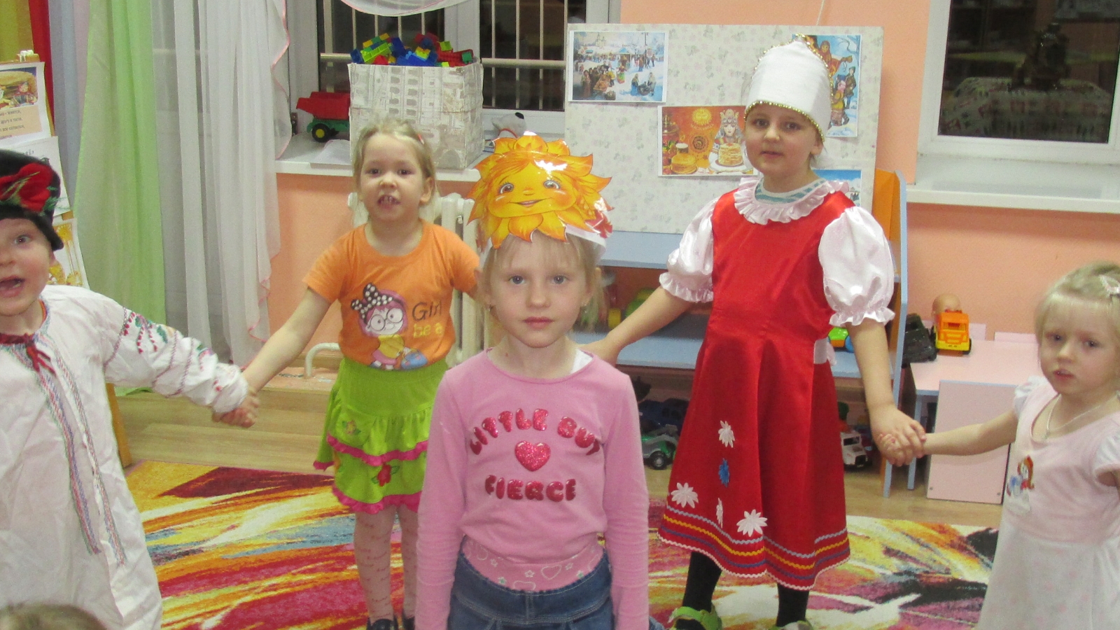 Чарада актив, инициативалы, шулай ук биремнәрне үтәүгә иҗади якын килгән 10 бала катнашты. Балалар зал үзәген бизәгән, Май чабу бәйрәменең тарихы белән таныштылар, аның тирәсендә әйлән-бәйлән йөрделәр, "Кайнар коймак" уенында осталыкларын һәм җитезлекләрен күрсәттеләр. Май чабу атнасының һәр көне нинди исемдә булганын белделәр. Балалар, тәрбияче белән бергәләп, костюмнар сайладылар, кашыкларда, шау-шулы уен коралларында уйнауны үзләштерделәр, такмаклар һәм җырлар җырладылар. Болар барысы да ихтыяр сыйфатларын һәм танып белү кызыксынуын формалаштыруга ярдәм итә. Моннан тыш, халыкның гореф-гадәтләре, фольклоры, үткәннең бүгенге белән бәйләнеше тәрбияләнүчеләрнең рухи-әхлакый һәм гражданлык-патриотик карашлары үсешенә ярдәм итә, алар мәдәниятне, көнкүрешне, шул заманнарның аралашу рәвешен төгәлрәк бирә ала. Дәрес җылы һәм дустанә шартларда чәй эчү белән узды.