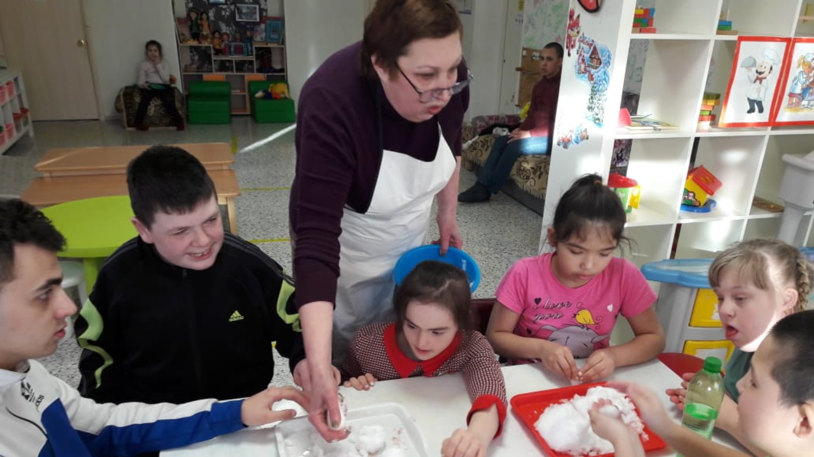 Дәрес барышында тәрбияләнүчеләр карның нинди үзенчәлекләргә ия булуын искә төшерделәр, бүлмә шартларында кар бабайларын ясарга тырыштылар. Эксперимент нәтиҗәсендә кар җылыдан курка, эри, гадәти суга әверелә, күп кенә табигый күренешләрнең ни өчен барганын аңларга өйрәнделәр. Балалар бик теләп эксперимент барышында барган хәлләрне күзәттеләр.