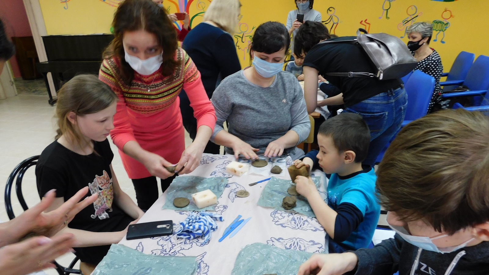23нче март көнне Яр Чаллының «Солнышко» мөмкинлекләре чикле балалар һәм яшүсмерләр өчен тернәкләндерү үзәгендә 1 нче балалар сәнгать мәктәбе педагоглары Кириллова Н.М. һәм Вечтомова Л.А. глинотерапия буенча мастер-класс үткәрделәр, анда 12 бала һәм 5 олы кеше катнашты.