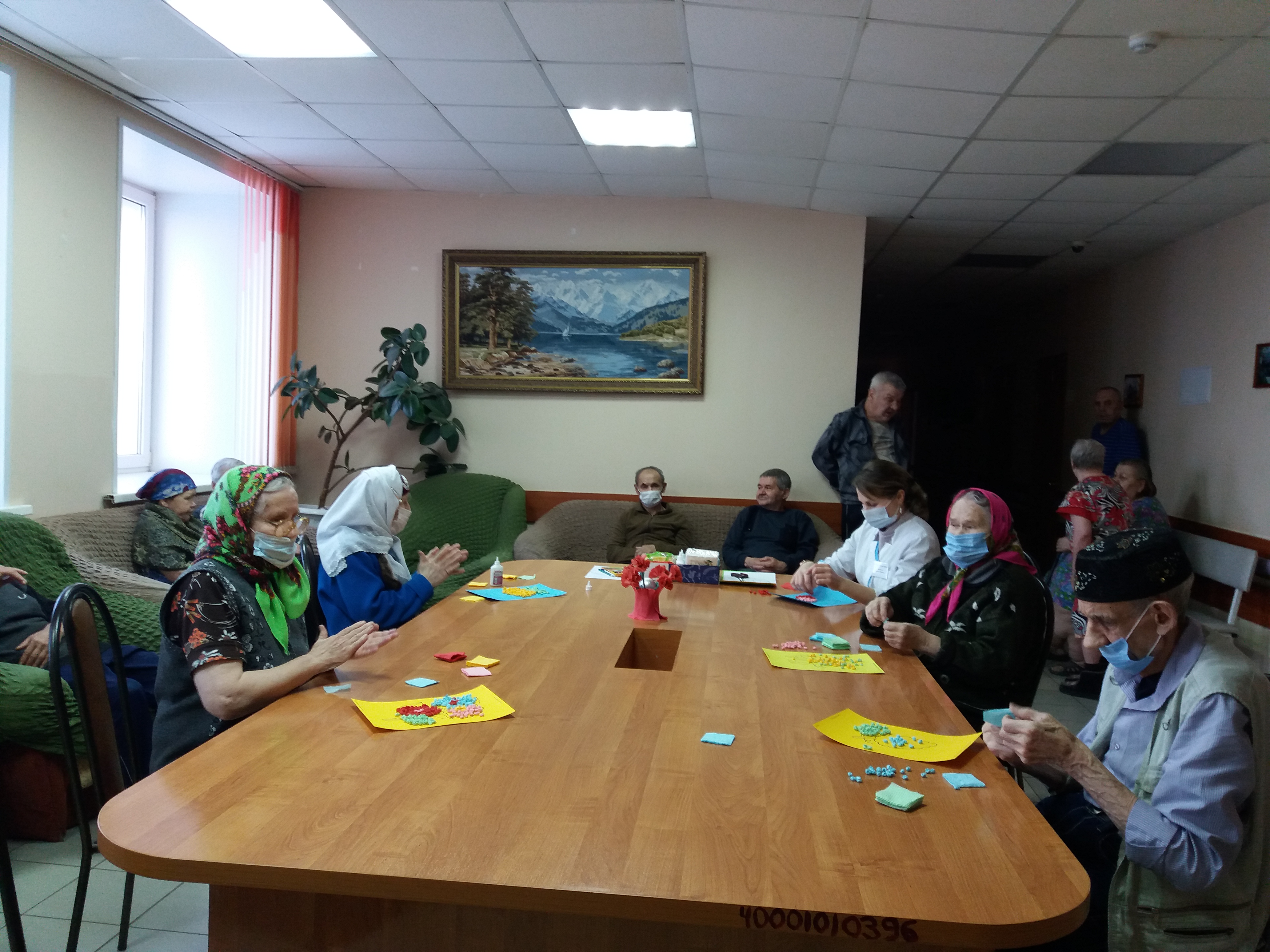 Кәгазь салфеткалардан аппликация белән шөгыльләнү өлкәннәргә файдалы. Бу шөгыль аларны тынычландыра, иҗади омтылыш бирә, баш миенең эшен активлаштыра. Интернат йортта социаль хезмәт алучыларга кәгазь салфеткалар белән эшләү бик ошый .Өлкәннәр бик теләп үзләренең композицияләрен һәм картиналарын иҗат итәләр. Аларның эшләре интернат-йортның стеналарын бизи.