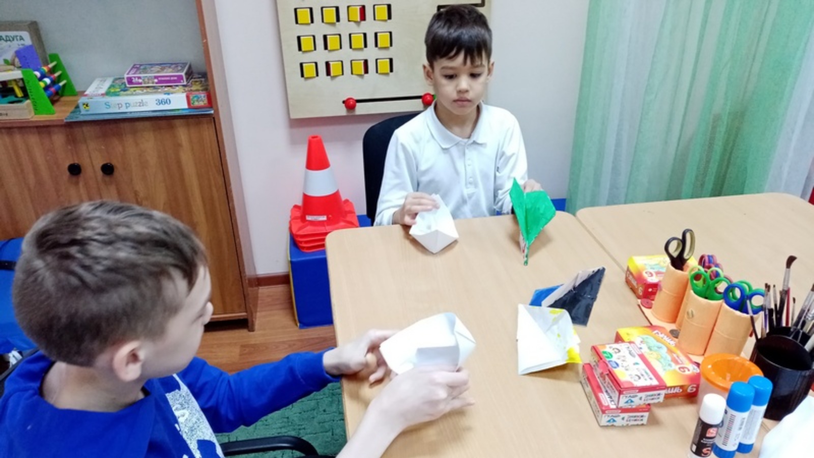 6 апрельдә Баулы муниципаль районының «Милосердие» халыкка социаль хезмәт күрсәтү комплекслы үзәгенең социаль педагогы Газыйева Гүзәл «Социаль ярдәм» проекты кысаларында, “Татнефть” хәйрия фонды ярдәме һәм АНОСЛОВ “Мин булдырам” фонды белән берлектә «Оригами» дип аталган төркемле дәрес үткәрде.