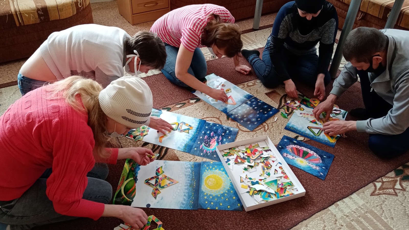 2021 нче елның 7 нче апреле көнне Түбән Каманың «Веста» гаиләгә һәм балаларга социаль ярдәм үзәге психологы Наталья Емельянова 5 катнашучы белән «Якын кешеләр» клубында «Тискәре карашлардан кулчатыр» дигән темага төркемле дәрес үткәрде. Максаты: психоэмоциональ халәтне тигезләү.