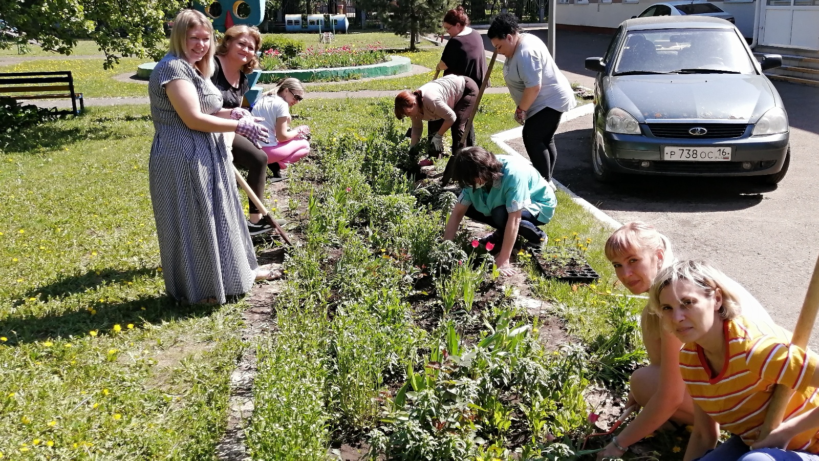 Бер генә участокны да яки өй алды бакчасын да матур чәчәк ата торган композицияләрсез күз алдына китереп булмый. Әгәр дә аны даими карап торсаң, ул бөтен сезон дәвамында безне үз чәчәкләре белән сөендерәчәк. Чәчәкләрдән клумба ясау беренче карашка катлаулы тоелса да булдыра алмаслык эш түгел. Иң мөһиме теләк һәм сабырлык кирәк. Дәресне үткәрү өчен социаль эш буенча белгеч Ольга Луб катнашучылар өчен кораллар: көрәкләр, кәтмән, секаторлар, чиләкләр һәм лейкалар әзерләнгән иде. Бурыч-ботакларның коры өлешләрен кисү,шулай ук күпьеллык үсемлекләрнең җир өсте өлешләрендәге калдыкларны бетерү. Аннары катнашучылар клумбаларда җирне тулыландырдылар, йомшарттылар, чәчәкләрне тукландырдылар, су сиптеләр. Белгеч шулай ук корткычларга һәм чәчәк авыруларына каршы көрәш мәсьәләсенә дә басым ясады.