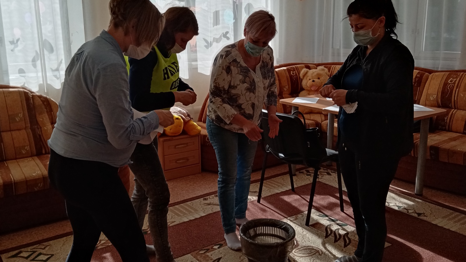 Казан шәһәренең бер мәктәбендә булган фаҗигале вакыйгалардан соң әти-әниләрдә эмоциональ киеренкелекне төшерү мәсьәләсе кискен торды. Шуңа күрә дәрес башында катнашучылар белән «Будильник» ассоциатив тесты ярдәмендә эмоциональ халәткә диагностика үткәрелде, ул барлык катнашучыларның да рухи яклары һәм аларның һәрвакытта да тискәре халәттән тиз генә чыга алмавын күрсәтте. Аннары психолог паник һөҗүмнәрне минимальләштерергә һәм тискәре эмоцияләрне киметергә мөмкинлек бирә торган берничә күнегүне башкарырга тәкъдим итте: «2 ресурс әйләнеше», «ыпыру», «юучы машина», т.Зинкевич-Евстигнееваның «метафорик картасы». Шулай ук дәрестә «чүп - чар пакеты» күнегүе кулланылды, анда барлык катнашучылар да аларны тискәре хис-кичерешләр кичерергә мәҗбүр итүен искә төшерделәр, аларны кәгазь битләренә яздылар, ә соңыннан барысы да чүп чиләгенә (символик рәвештә-үз башыннан һәм тормышыннан алып ыргыту) чыгардылар.