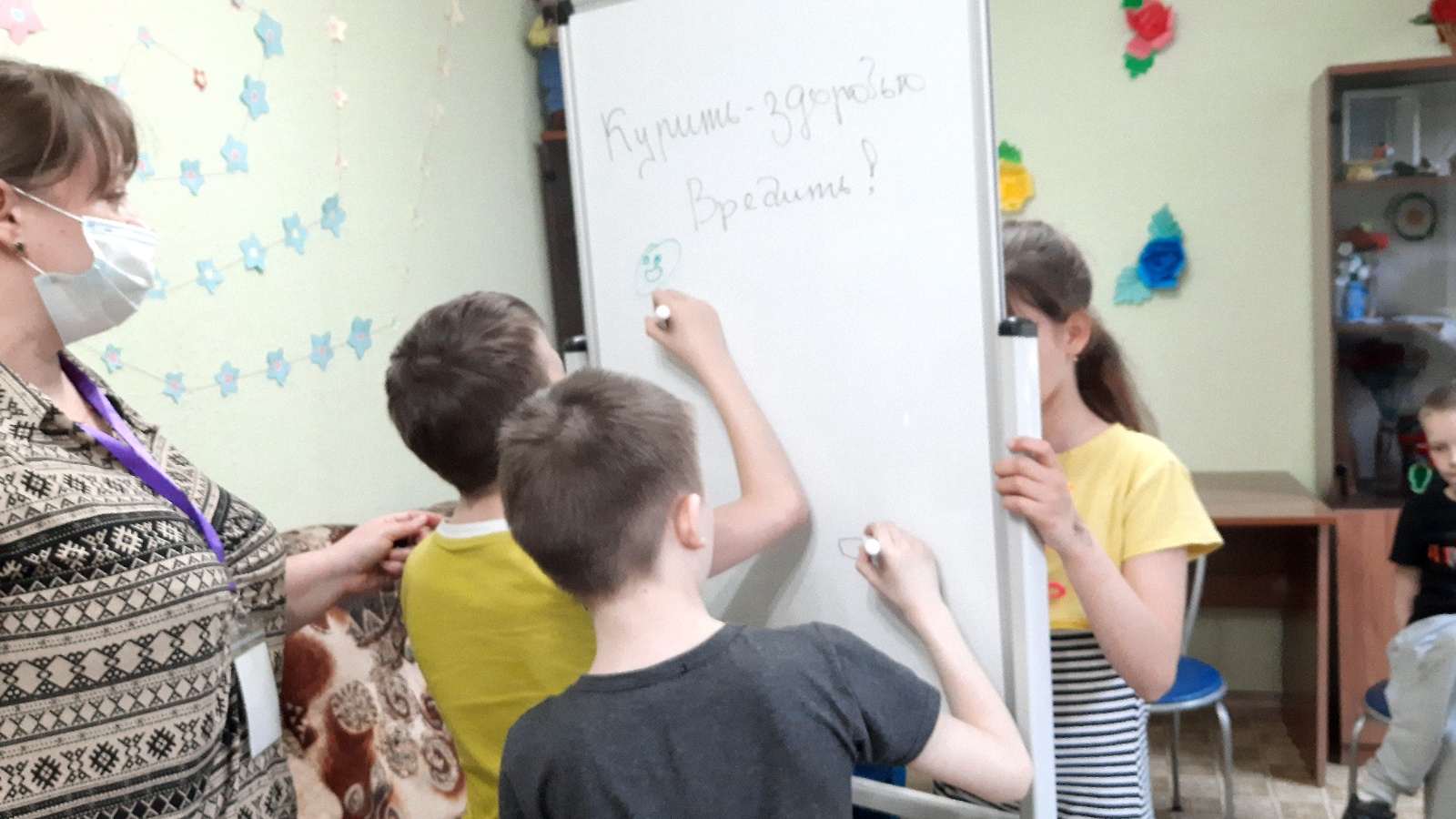 Дәрес башында белгеч балаларга 26 майдан 27 июньгә кадәр Халыкара наркотик чаралардан явызларча файдалану һәм аларның законсыз әйләнешенә каршы көрәш көненә багышланган «Наркотикларсыз тормыш» республика наркотикларга каршы акциясе узуын, ә31 майда Бөтендөнья тәмәкесез көн билгеләп үтелүен сөйләде. Әңгәмә барышында балалар начар гадәтләре булган кешеләр турында үз фикерләре белән уртаклаштылар, аларның тышкы кыяфәтләре, үз – үзеңне тоту үзенчәлекләре турында сөйләделәр. Аннары яшьләр белән хәзерге вакытта популяр булган электрон тәмәке белән мавыгу турында фикер алыштылар. Белгеч балалар белән гадәти, шулай ук электрон тәмәкенең зыяны, аларның тәмәке тартучы кешенең үзенә дә,тирә-юньдәгеләрнең тормышына һәм сәламәтлегенә йогынтысы турында мәгълүмат белән уртаклашты.