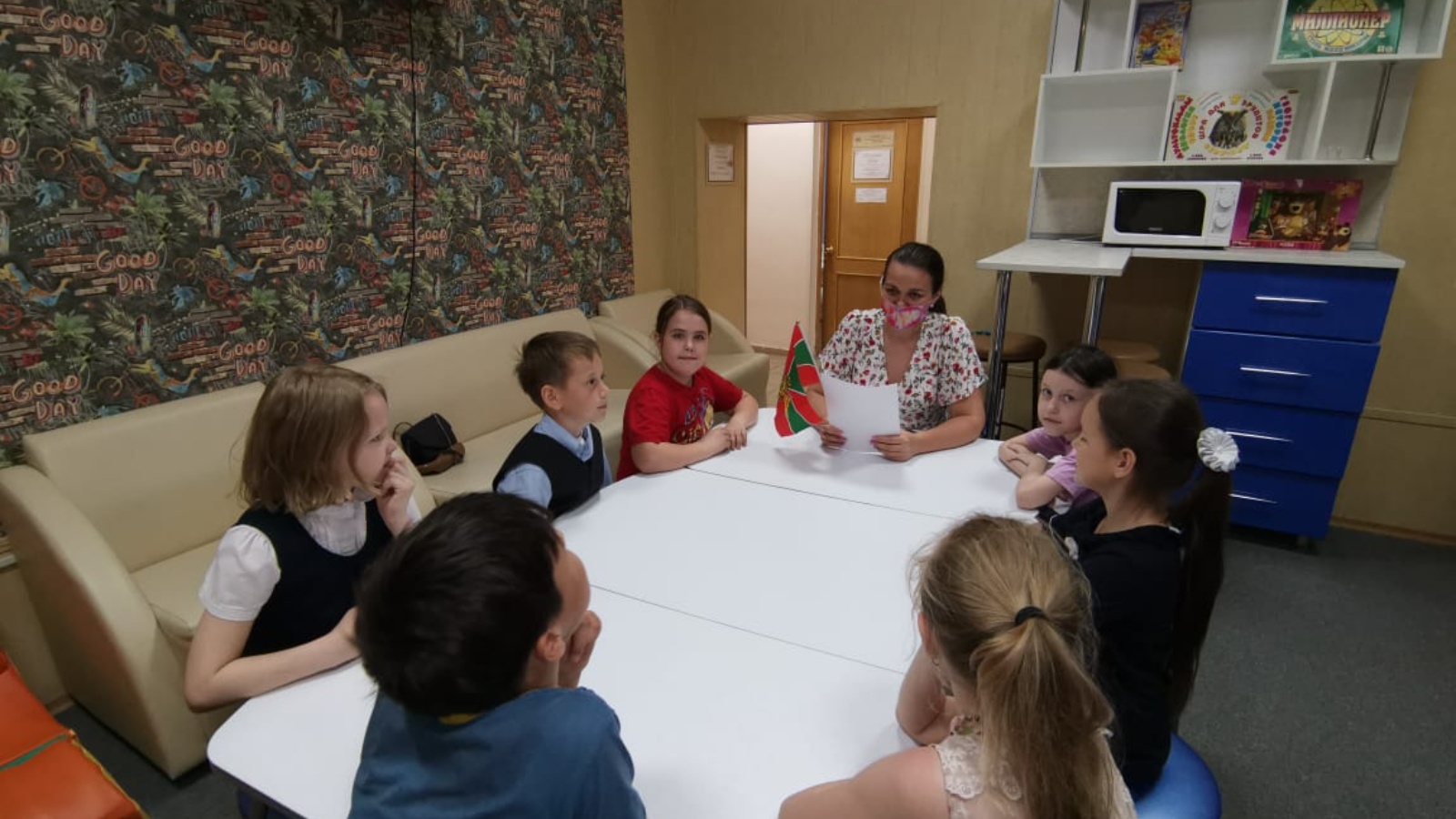 Бүген “Улыбка” клубына өйрүче балигъ булмаган социаль хезмәт алучылар Ватанны саклаучылар һөнәре бар икәнен, чиктә хезмәт итү - һөнәр генә түгел, ә тормыш һәм яшәү рәвеше, Ватанга мәхәббәт, югары профессиональлек һәм ант итүгә тугрылык икәнлеге белделәр. Балалар бәйрәмнең тарихы белән таныштылар, гаскәрләрнең төрләре турында белемнәрен киңәйттеләр. А.Бартоның “На заставе” шигырь формасындагы сәнгать әсәрен игътибар белән тыңладылар. Укылган әсәр турында фикер алыштылар һәм рәсемнәр ясадылар.