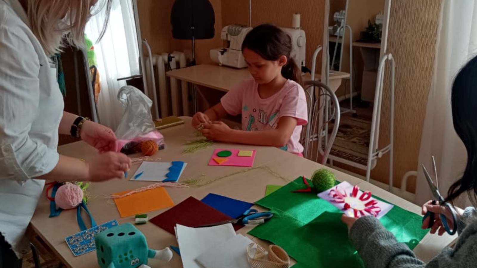 Татарстан Республикасында чаралар комплексын үстерү буенча нәтиҗәле практикаларны тормышка ашыру эше кысаларында социаль ярдәм күрсәтелүче күп балалы, мохтаҗ булган гаиләләргә «Тегүчелек эше» юнәлеше буенча хезмәт белән тернәкләндерү кабинетында Түбән Кама гаиләгә һәм балаларга социаль ярдәм күрсәтү «Веста» үзәгенең социаль эш буенча по белгече Ландыш Зариповой 8 июньдә «Фетрдан кубик тегү» темасыны дәрес уздырды. Максат: үз кулларың белән сенсорлы үсүче кубик ясау, игътибар, хәтер, түземлелек, материал белән эшли белүне үстерү.