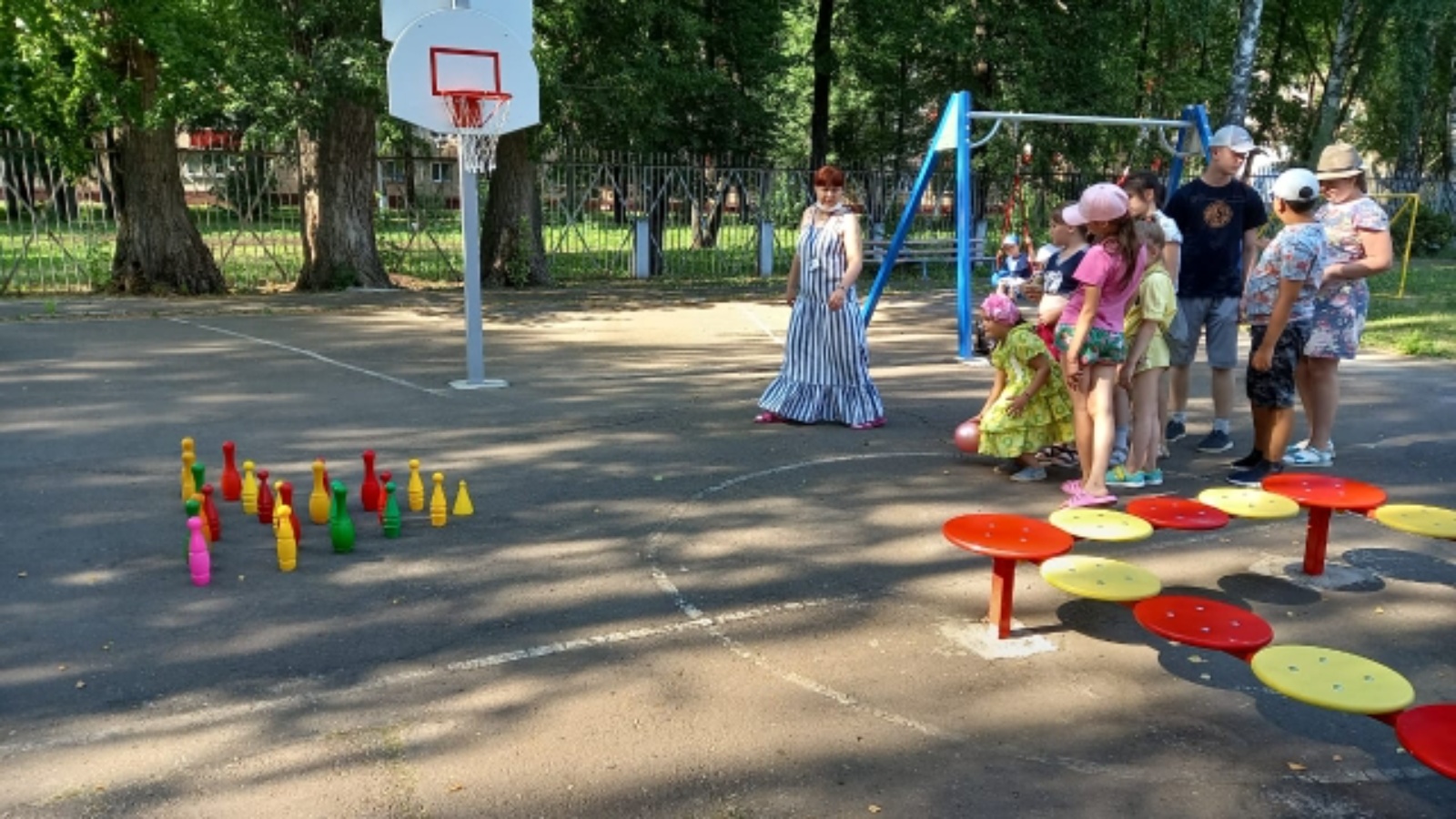 Дәрес башында белгеч балаларга нинди ишегалды уеннарын белүләре турында сөйләшергә тәкъдим итте. Катнашучыларны «Боулинг» исеме астында уенның инструкциясе һәм бурычлары белән таныштырды, уен принцибын балаларга җиткерде. Аннан соң балалар белән бергә бу уенны, шулай ук туп белән башка уеннар уйнадылар. Дәрес вакытында балалар билгеле бер аралашу күнекмәләрен алдылар, эмоциональ һәм физик халәтләрен яхшырттылар.