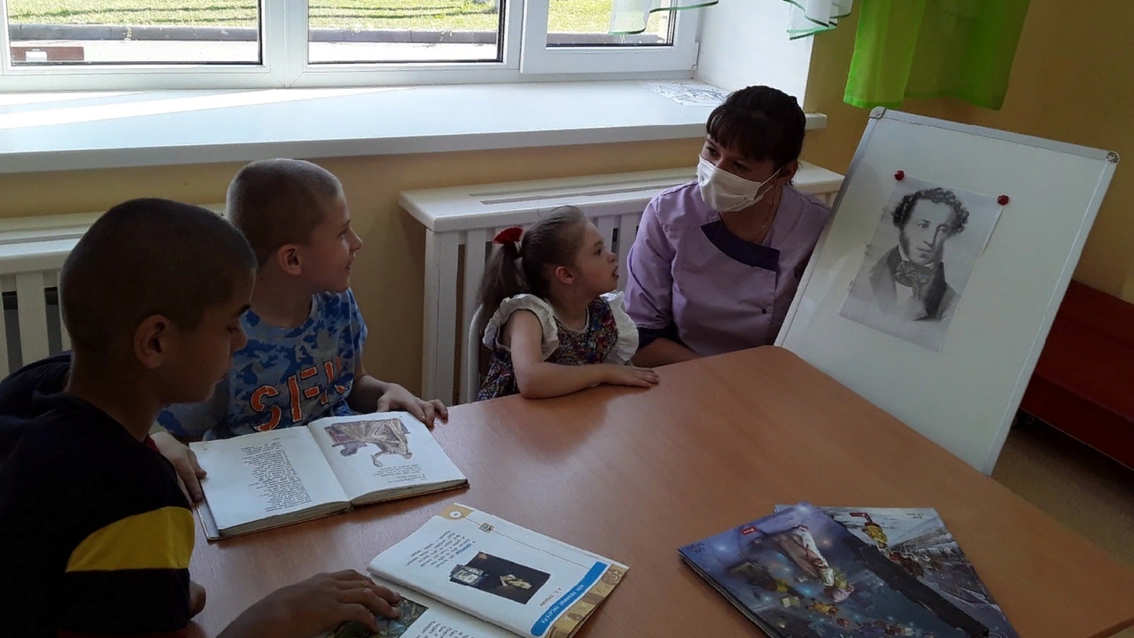 Әдәби сәгать башында тәрбияче балаларга рус шагыйре А.С. Пушкинның тормышы һәм иҗаты турында сөйләде. Аннан соң балалар Пушкин әкиятләре буенча викторинада актив катнаштылар, теге яки бу персонажларның нинди әкиятләрдән булуын таныдылар, язучының әсәрләре буенча әзерләнгән рәсемнәрне буядылар. Әдәби сәгать лирик рухта үтте. Бик кызыклы һәм мавыктыргыч булды. А.С. Пушкинның әсәрләре яратып укыла, димәк, язучы да кешеләр күңелендә яши.