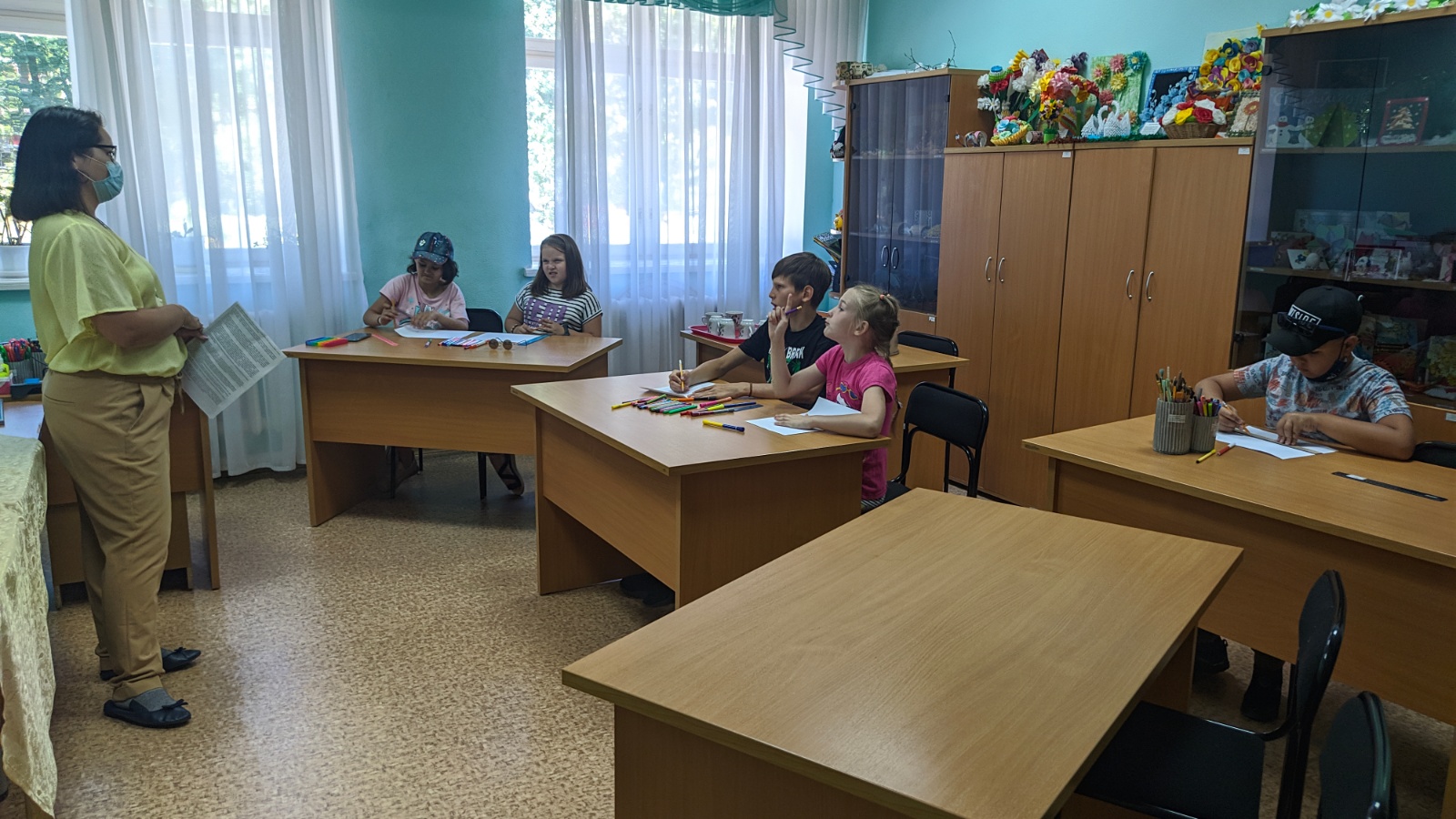 Шуннан соң дәрес иҗади бирем белән дәвам итте: катнашучыларга керәшеннәрнең традицион ашлары турында рәсем ясарга, шулай ук милли костюмнарны бизәргә кирәк булды.