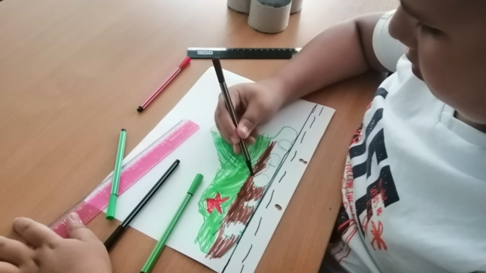 Дәрес ахырында катнашучылар тәэсирләре белән уртаклаштылар, аннары ишткәннәрен рәсемнәрдә ясадылар һәм үзләренең рәсемнәрендә нәрсә күрсәтергә теләүләре турында сөйләделәр.