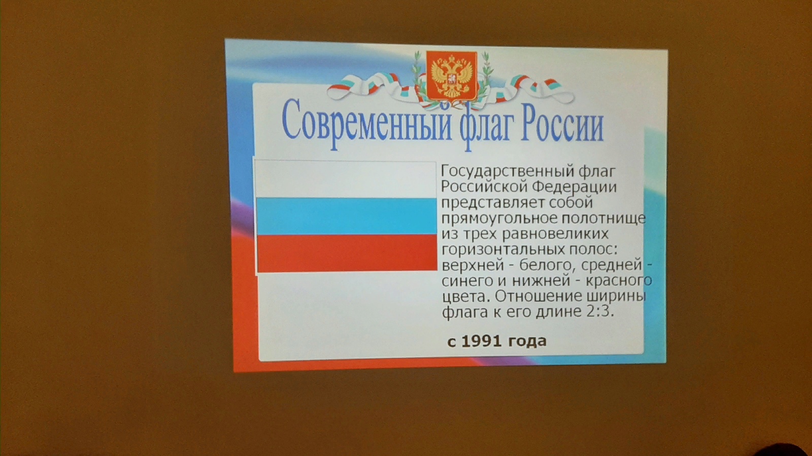 1991 елның 22 августыннан башлап, ел саен Россия Федерациясендә Дәүләт флагы көне билгеләп үтелә.