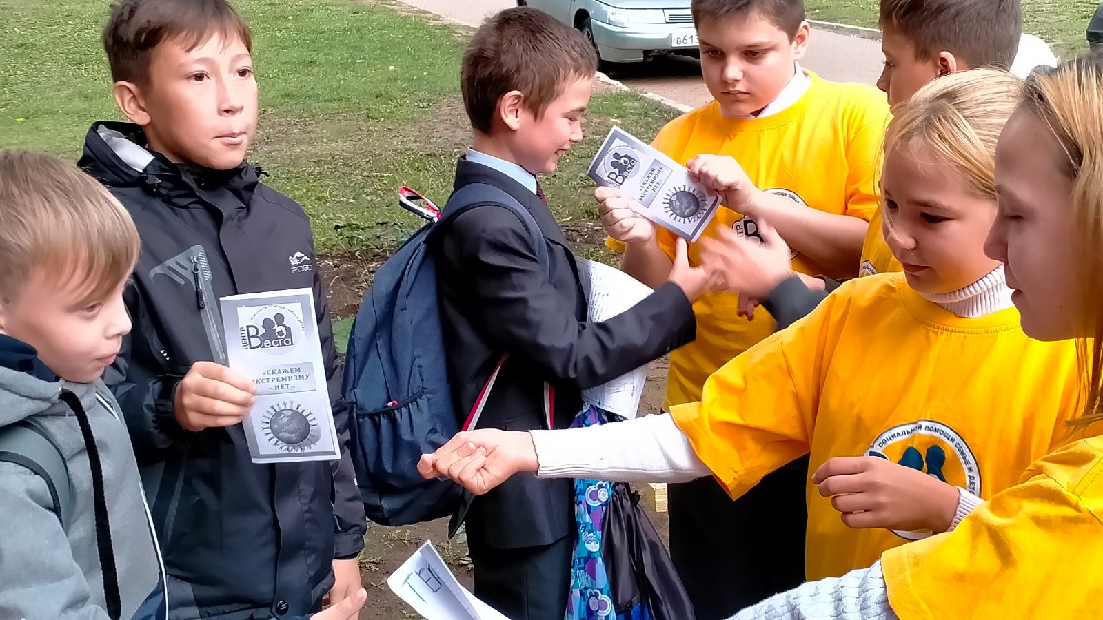 “Экстремизмга-юк!” айлыгы кысаларында Түбән Каманың “Веста” гаиләгә һәм балаларга социаль ярдәм күрсәтү үзәгенең социаль эш буенча белгече Марта Камалова “Игелек буыны” отрядының 4 волонтеры белән берлектә 15 сентябрь көнне 7 нче социаль участокта “Экстремизмга - юк!” айлыгы кысаларында 26 балигъ булмаган бала арасында “Экстремизмга - юк!” акциясе үткәрде. Максат: экстремизм, терроризм һәм аның нәтиҗәләре турында күзаллауны формалаштыру.