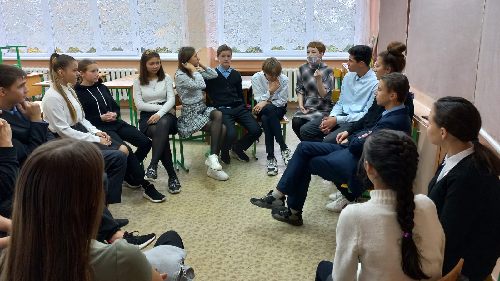 Дәрес баш мие штурмыннан башланды. Психолог яшүсмерләргә үзләренә билгеле булган барлык авыруларны искә төшерергә һәм алар нәрсә белән куркыныч икәнлеген искә алырга тәкъдим итте. Кызганычка каршы, исемлек тулы булмады, һәм психолог яшүсмерләрнең белемнәрен тулыландырды. Аннан соң үткәрелгән күнегүләр катнашучыларга әйләнә-тирәдәгеләр белән хезмәттәшлек итү ысулын билгеләргә, авыру кешенең (әйтик, СПИД) ерак киләчәге булмавын аңларга мөмкинлек бирде. Ә «зәңгәр/кызыл кәнфит» күнегүендә психолог барлык катнашучыларга 2 төстәге кәнфит таратты, ә соңыннан балаларга кызыл кәнфитләр эләккән кешеләрнең шартлы рәвештә СПИД, ә зәңгәре – сифилис йоктырган кешеләр, дип аңлатты. Психолог шулай ук әдәпле, әмма тәкъдим ителгәннәрдән баш тарта алган яшүсмерләрне дә мактады.