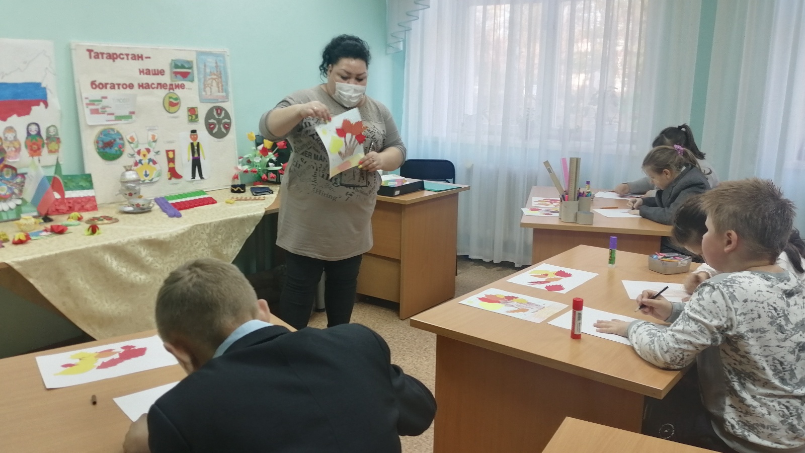 Дәрес ахырында балалар үз эшләрен күрсәттеләр һәм ел фасылларын кабатладылар.