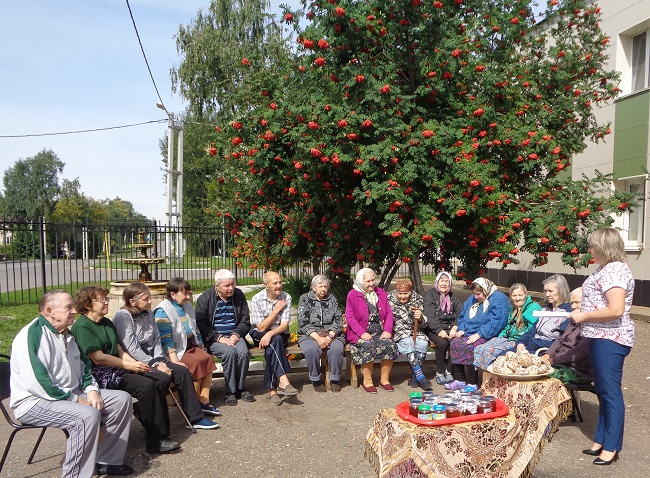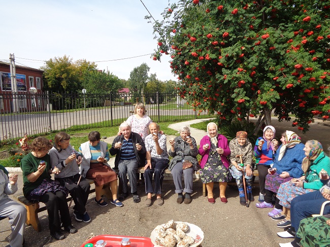 Бу көнне социаль хезмəт буенча белгеч Савинова С.А. тарафыннан "Өлкəн яшьтə патриотик тəрбия" технологиясе кысаларында ачык һавада "Баллы Спас" чарасы үткəрелде. Бу өлкəн яшьтəгелəрнең рухи культурасын һəм бердəмлеген булдыру һəм киңəйтү өчен кирəк.