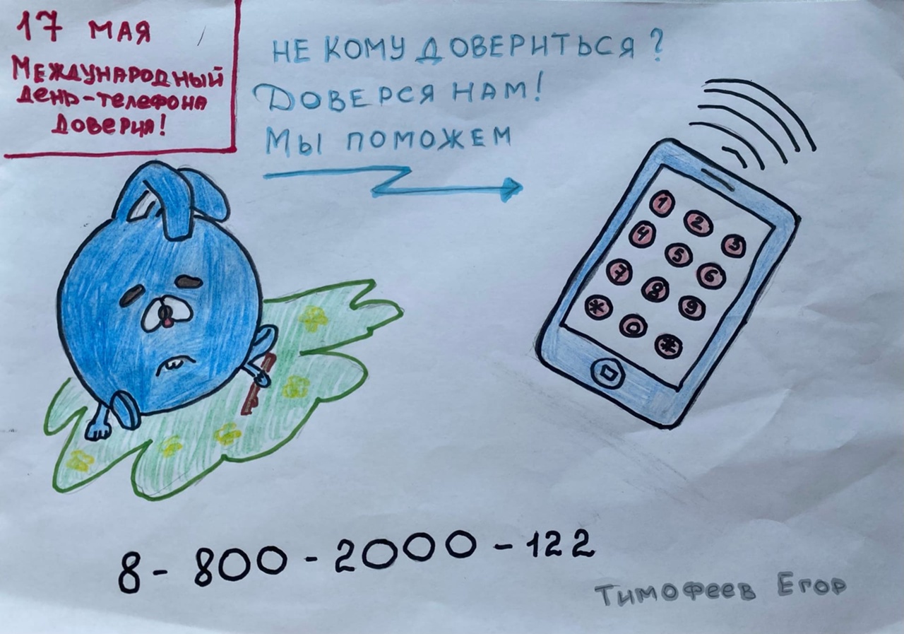 Халыкара ышаныч телефоны көне кысаларында 11-17 май көннәрендә гаиләгә һәм балаларга социаль ярдәм күрсәтү бүлегендә "Ышаныч телефоны" дигән балалар рәсеме конкурсы узды